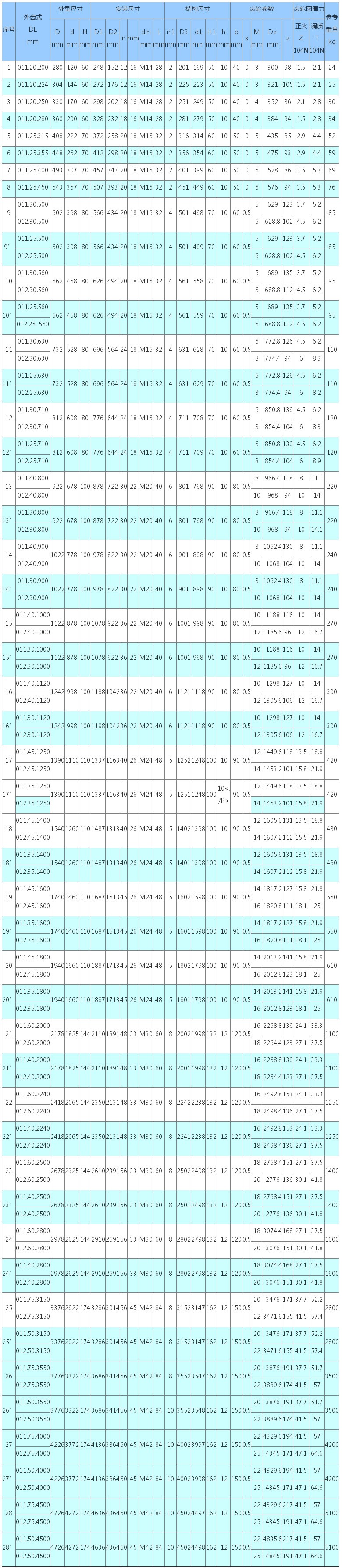 3、表內齒輪圓周力為最大圓周力,額定圓周力取其1/2。
