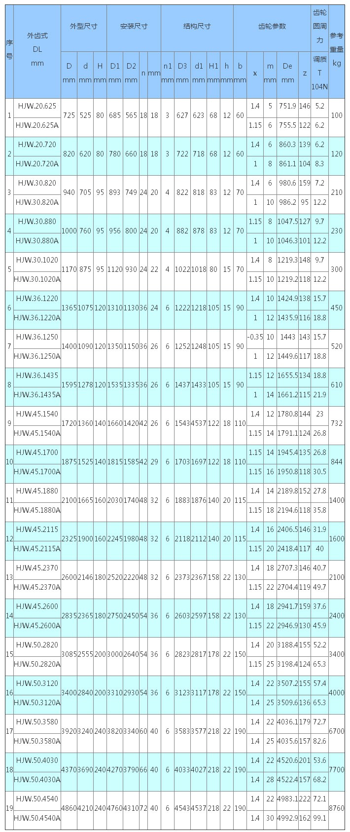 4、表內變位系數均為外齒式設計。