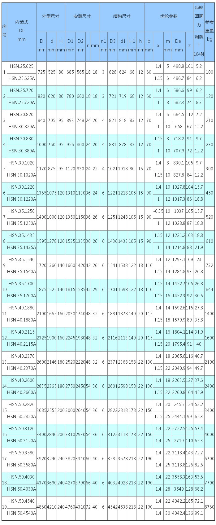 3、表內齒輪圓周力為最大圓周力,額定圓周力取其1/2。