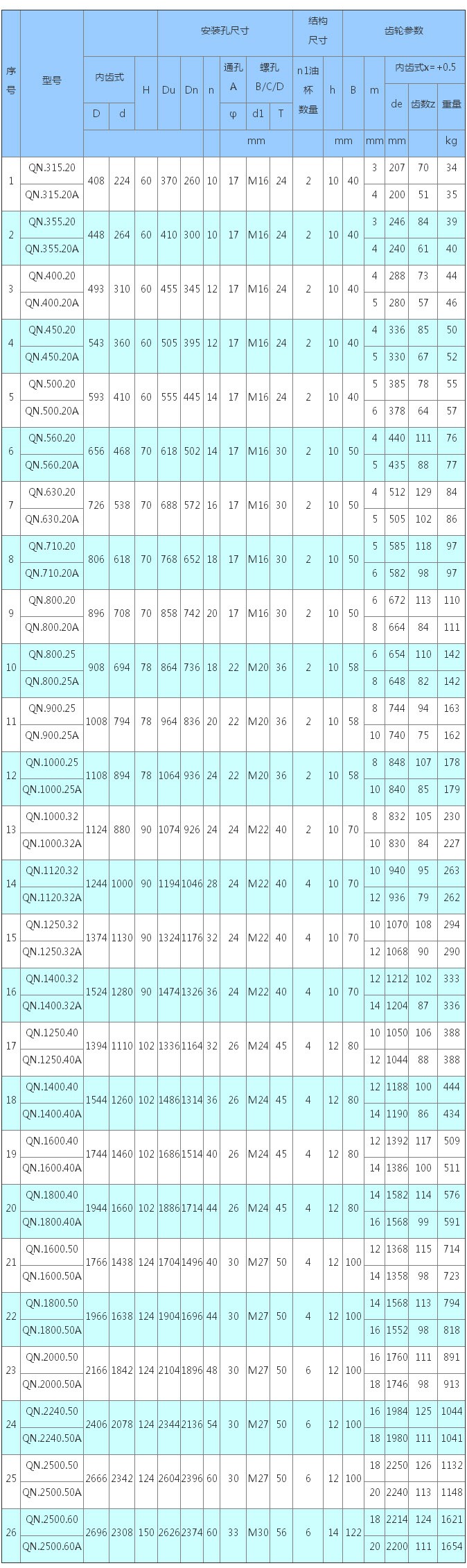 3、表內齒輪圓周力為最大圓周力,額定圓周力取其1/2。
